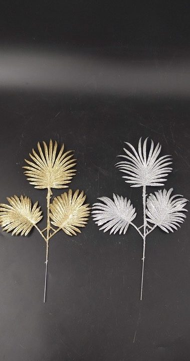 Cành Lá Cọ 3 Nhánh Nhũ Kim Tuyến Trang Trí