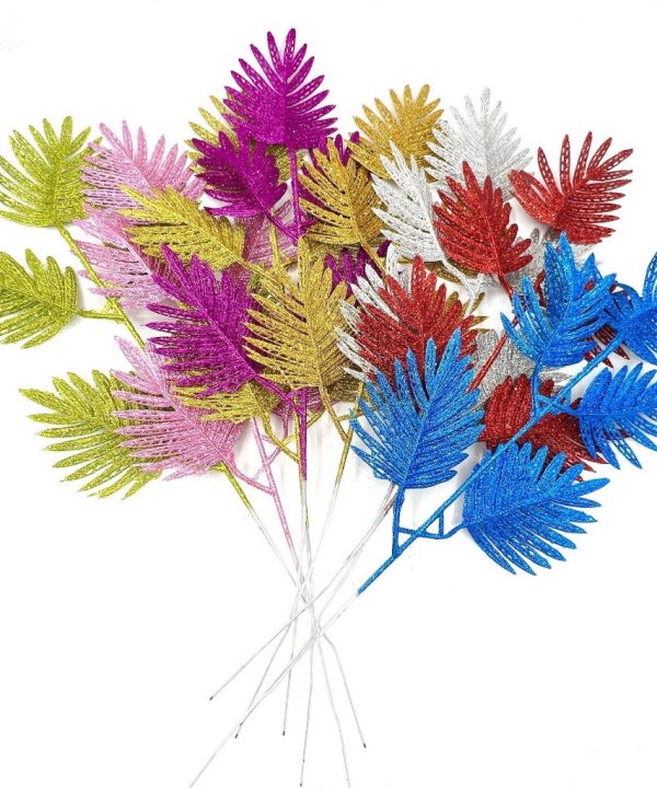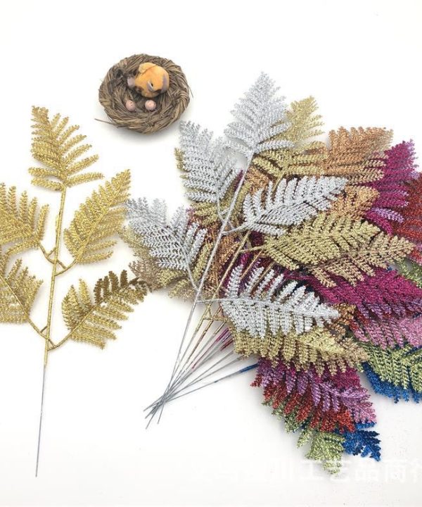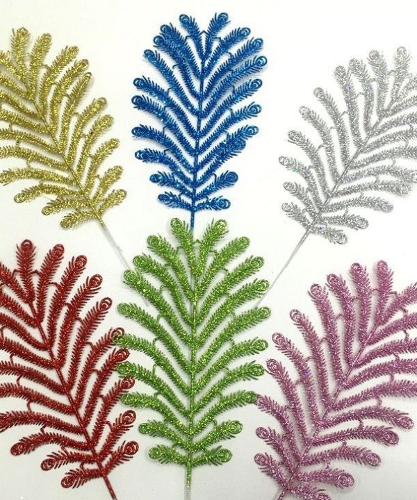 Cành Lá Cọ 5 Nhánh Nhũ Kim Tuyến Trang Trí