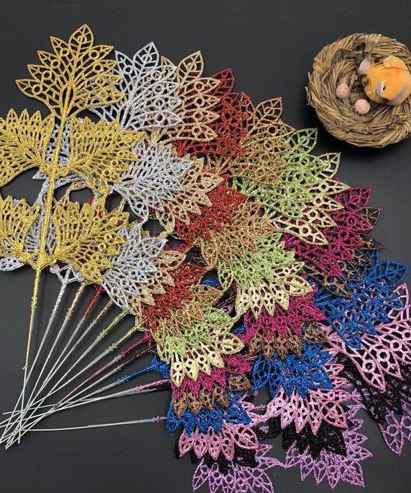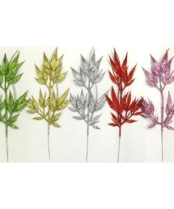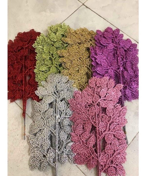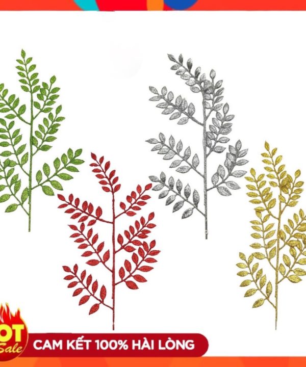 Cành Lá Dương Sỉ 5 Cánh Phủ Nhũ Trang Trí