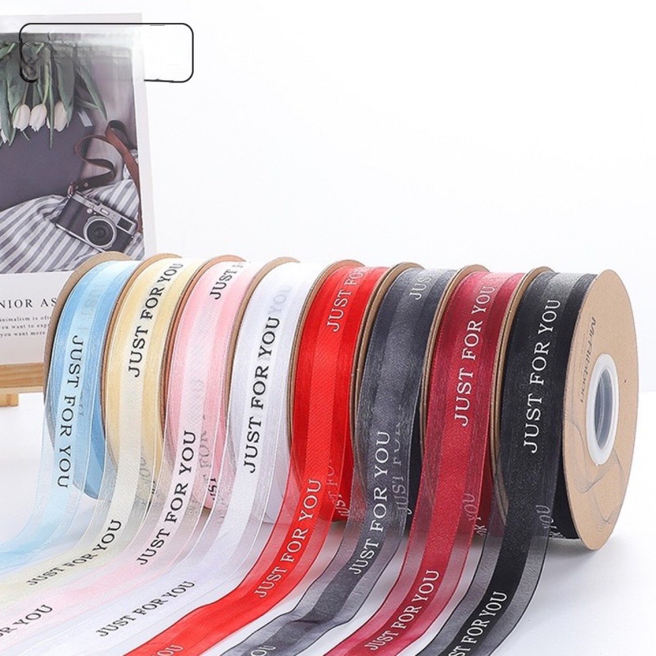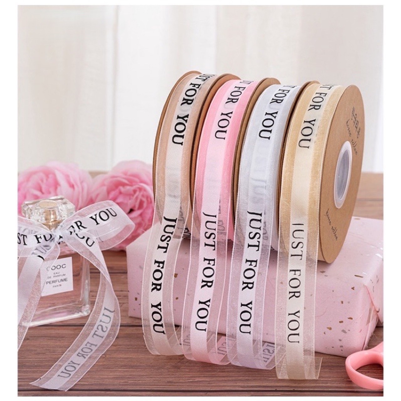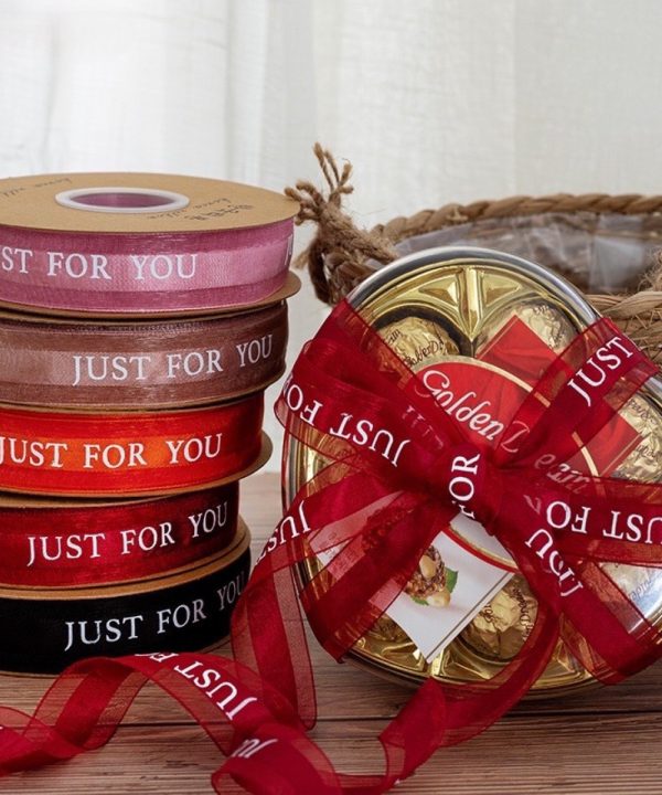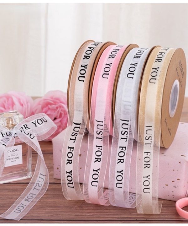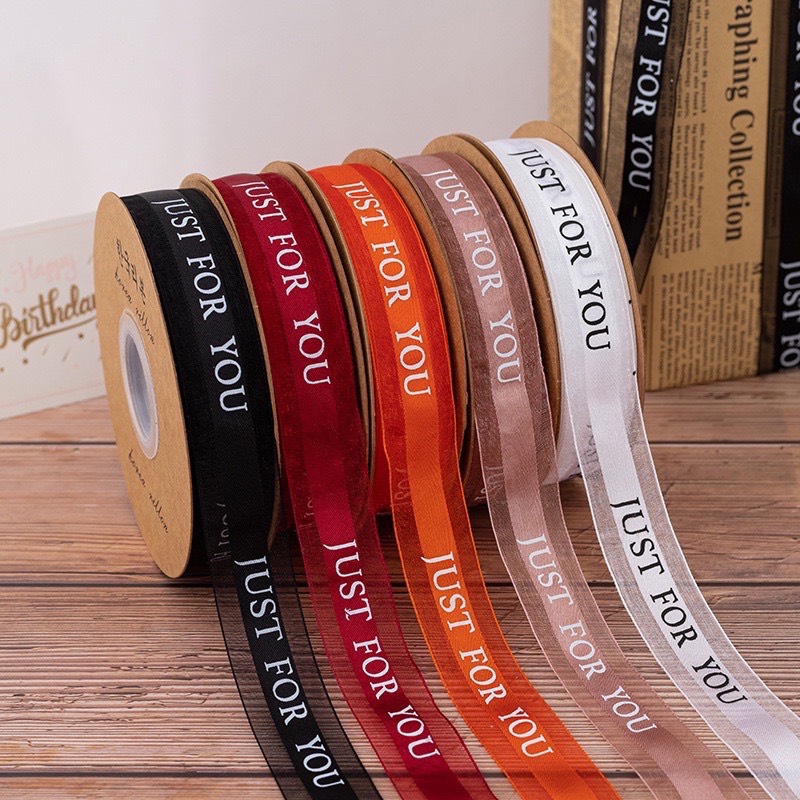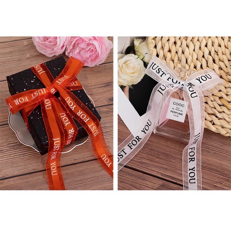 Dây Ruy Băng Voan Lụa Cao Cấp Chữ Just For You, Bản 2.5cm-45m Buộc Quà Buộc Hoa