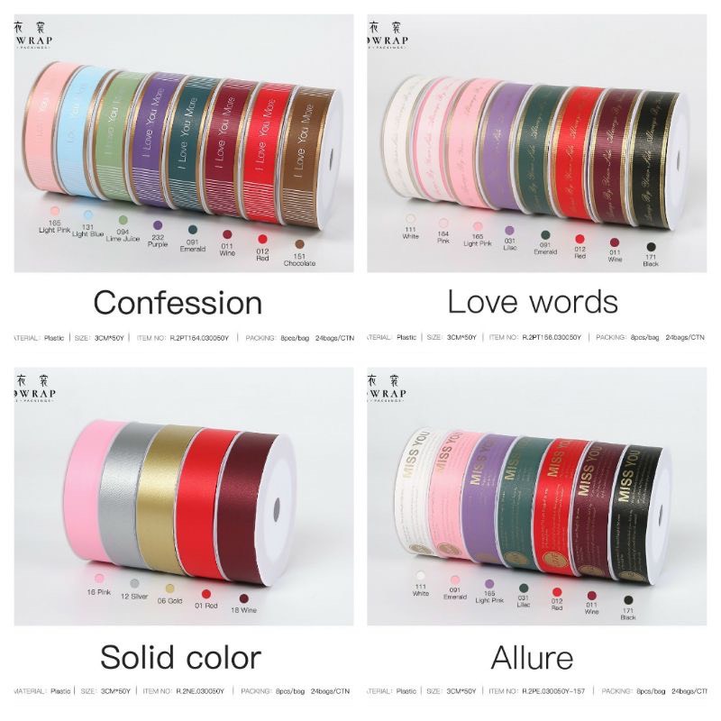 Cuộn ruy băng lụa Thái bản 3cm đẹp, bán theo cuộn 50m, màu sắc đa dạng