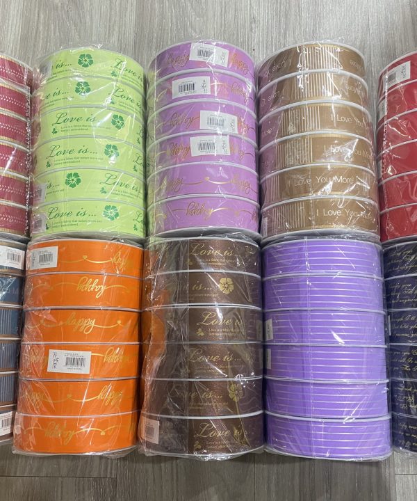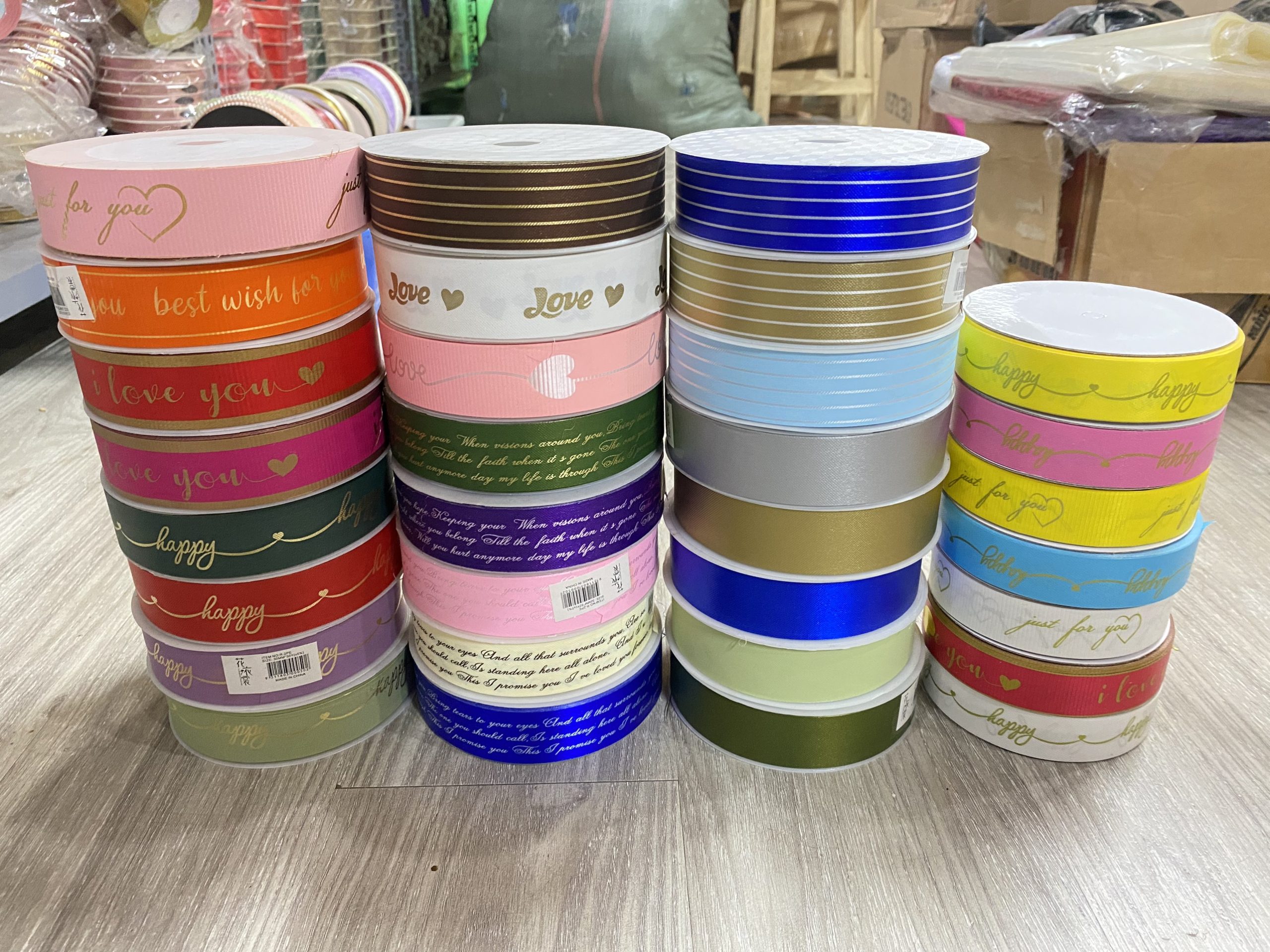 ✅ Cuộn ruy băng in chữ hoạ tiết Happy khổ 3cm , độ dài 45 met (50yar)