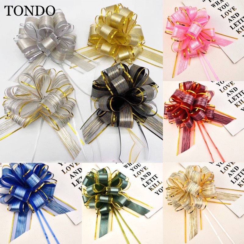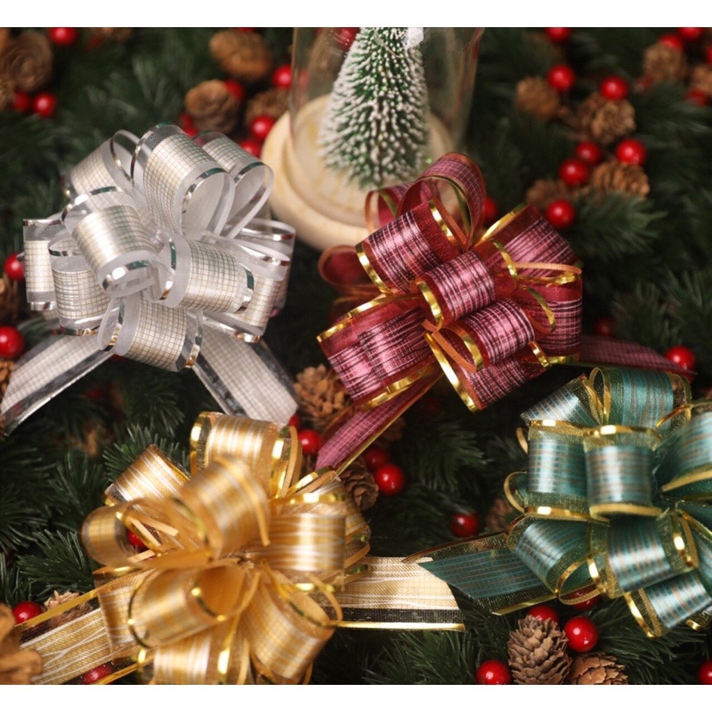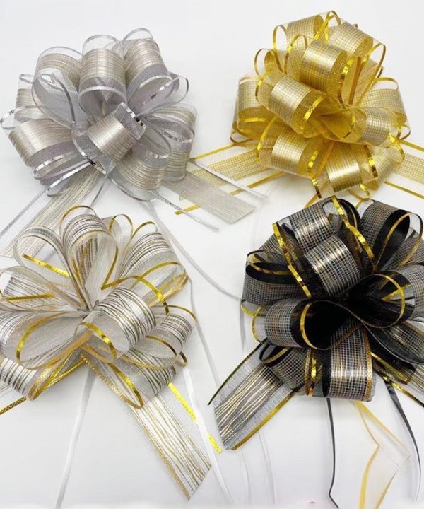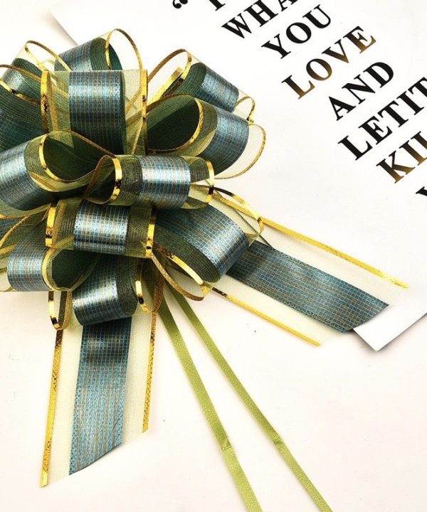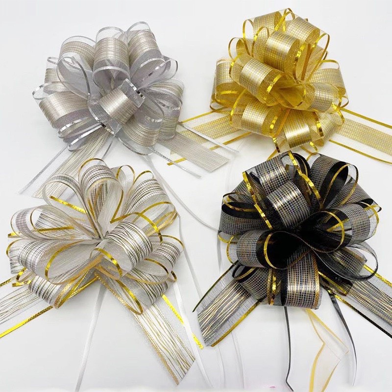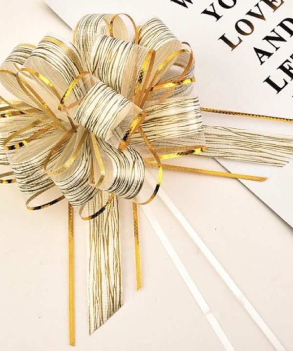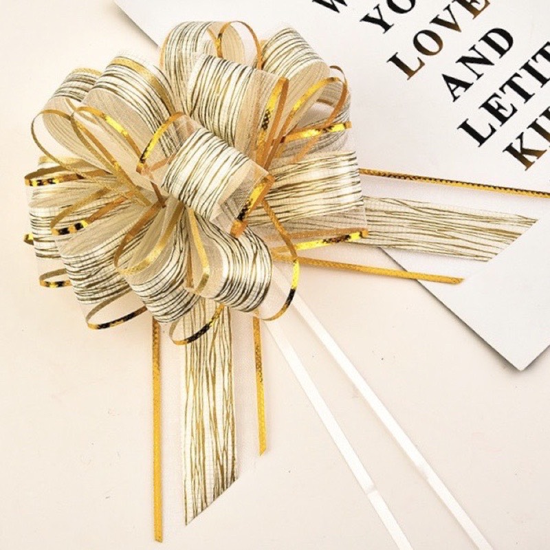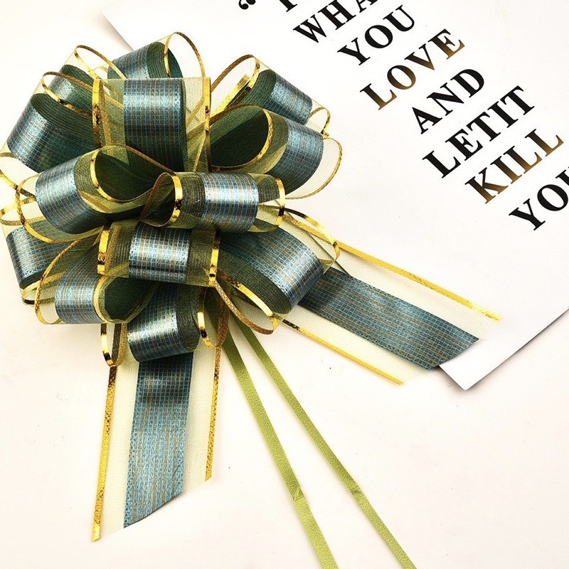 Nơ Rút Tú Cầu Sợi Tuyết Viền Vàng Bản 5cm-136cm Buộc Quà Buộc Hoa Trang Trí Đẹp