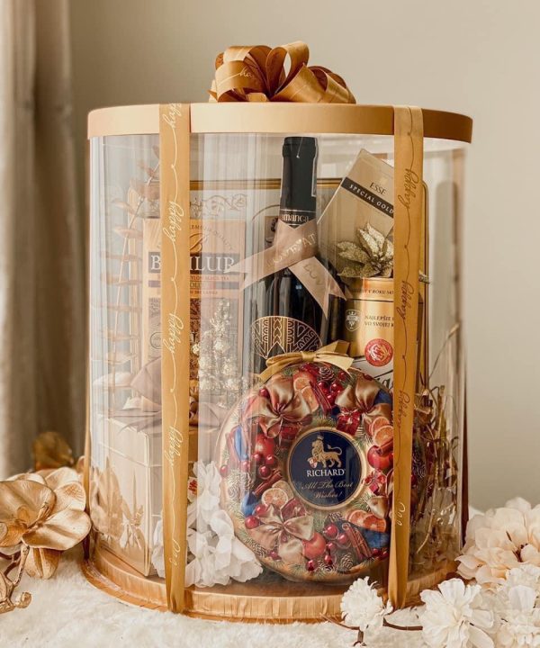 🎁 Hộp quà có nắp mika trong suốt bên trên, thắt nơ lấp lánh rất sang chảnh.